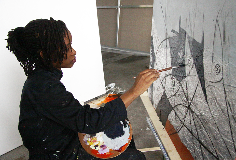 Above artist Chinyere Odinukwe at work